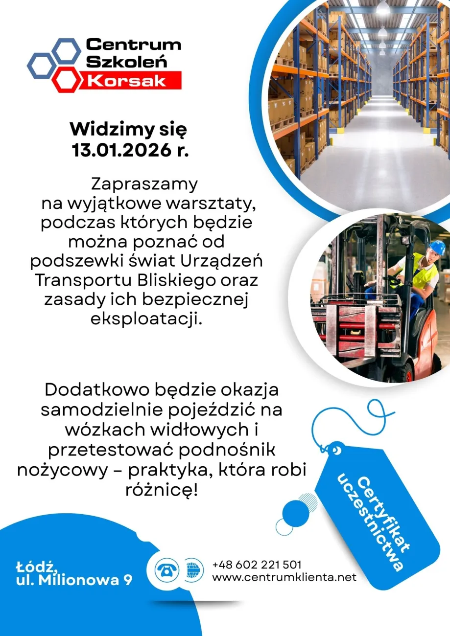 - Szkolenie: Urząd Dozoru Technicznego i Urządzenia Transportu Bliskiego w biznesie- Centrum Szkoleń Korsak sp. z o.o.