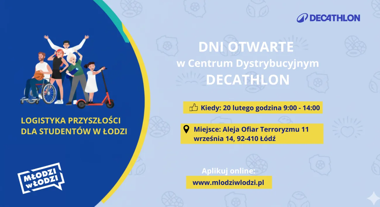 Zapraszamy łódzkich studentów, zwłaszcza pasjonatów Logistyki, Automatyki i Optymalizacji Procesów, a także pasjonatów sportu, na Dni Otwarte w sercu łańcucha dostaw – Centrum Dystrybucyjnym Decathlon w Łodzi! Zobacz, jak firma zarządza milionami produktów sportowych, jakie technologie stoją za szybkością dostaw i jak wygląda praca w jednym z najnowocześniejszych magazynów w regionie.